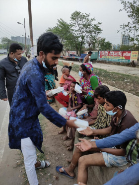 The law students of the Law Club of World University of Bangladesh (LC WUB) distributed iftar (food) packets among destitute street children, men and women near Airport Railway Station and Sector 9, Uttara, Dhaka on 27th April 2021. Rokiur Jaman and Asa Islam took the leadership. The poor who received iftar packets were happy and grateful.